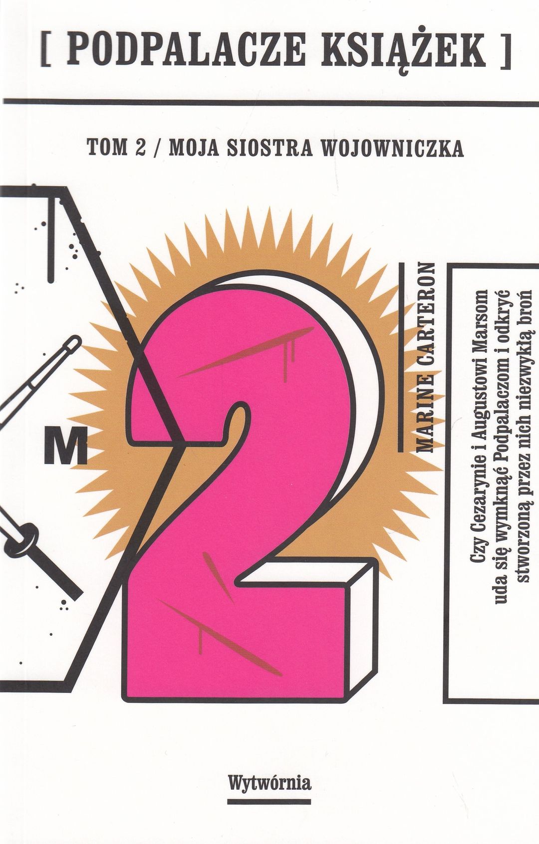 Drugi tom trylogii "Kodu Leonarda da Vinci dla nastolatków". Kontynuacja przygód Augusta Marsa i jego siostry Cezaryny. Czytelnicy pierwszego tomu nie będą zawiedzeni. Akcja toczy się wartko, a bohaterowie, choć postawieni w trudnej sytuacji, nie zamierzają się poddać i nie opuszcza ich poczucie humoru. August z przyjaciółmi wpada na trop tajnej broni Podpalaczy. Bractwo ma plan ucieczki rodziny Marsów z Komandorii. Kluczową rolę odegra Cezaryna, której genialny umysł i natura wojowniczki pomogą Bractwu wyjść z kłopotów i przejść do ofensywy.